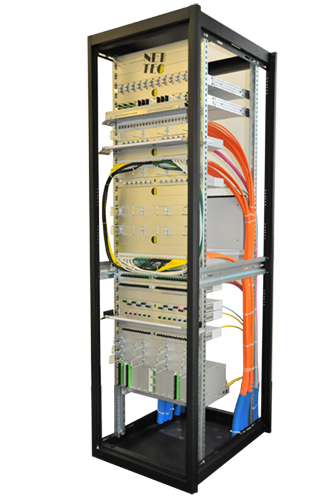 Die Racks sind in unterschiedlichen Massen, Ausbau- und Montagestandards erhältlich. Diverses Schrank-Zubhör wie Sockel, Rollen, Dachlüfter, Fachböden und Tablare, spezifische Schrank-Zusätze im Fiberoptic- und Kupferbereich und für ein sauberes Kabelrangiermanagement sind Bestandteile des Sortiments. Front- und Blindplatten können individuell beschrifttet werden. Installationskabel unterschiedlicher Kategorien bis Kat. 7A für den Innen- und Ausseneinsatz werden auf Trommeln in Wunschlängen oder mit Retournierungsmöglichkeit zur Verfügung gestellt.